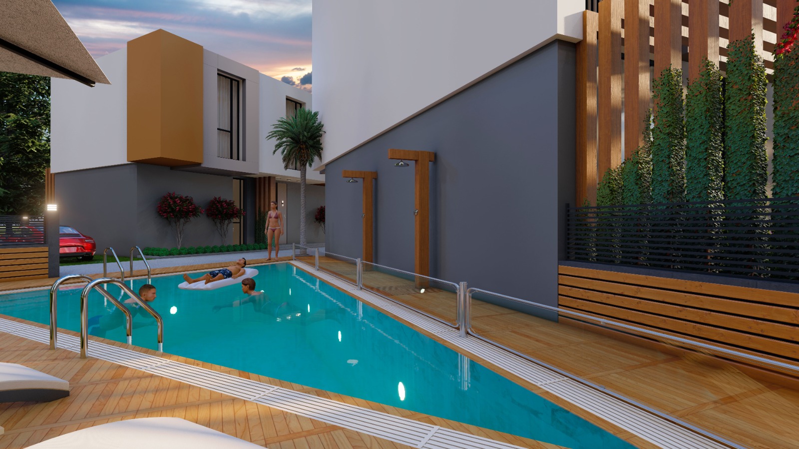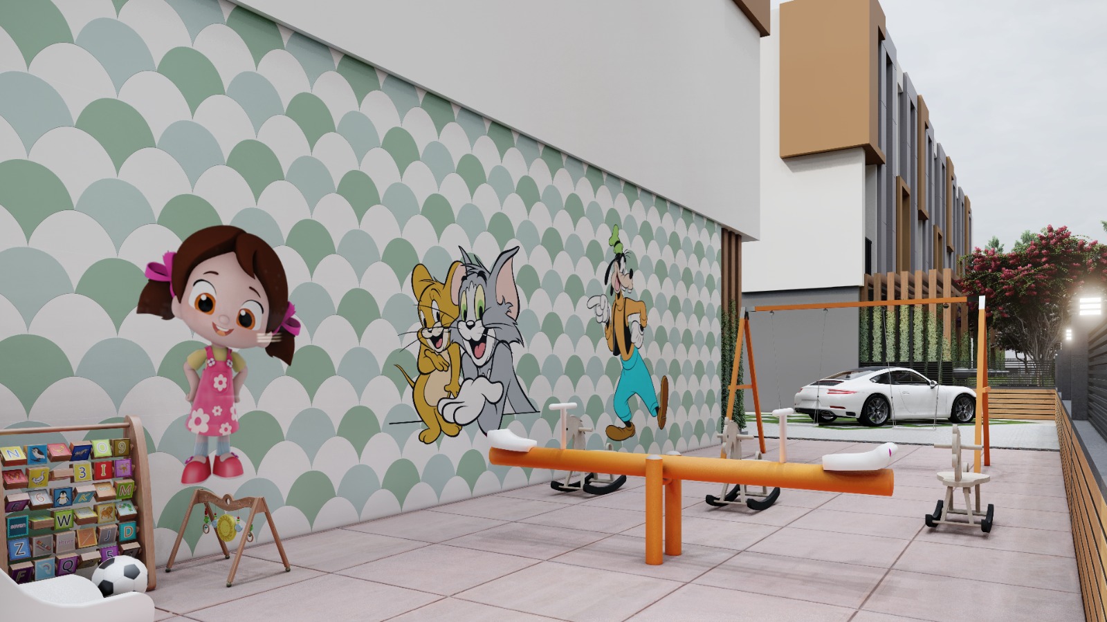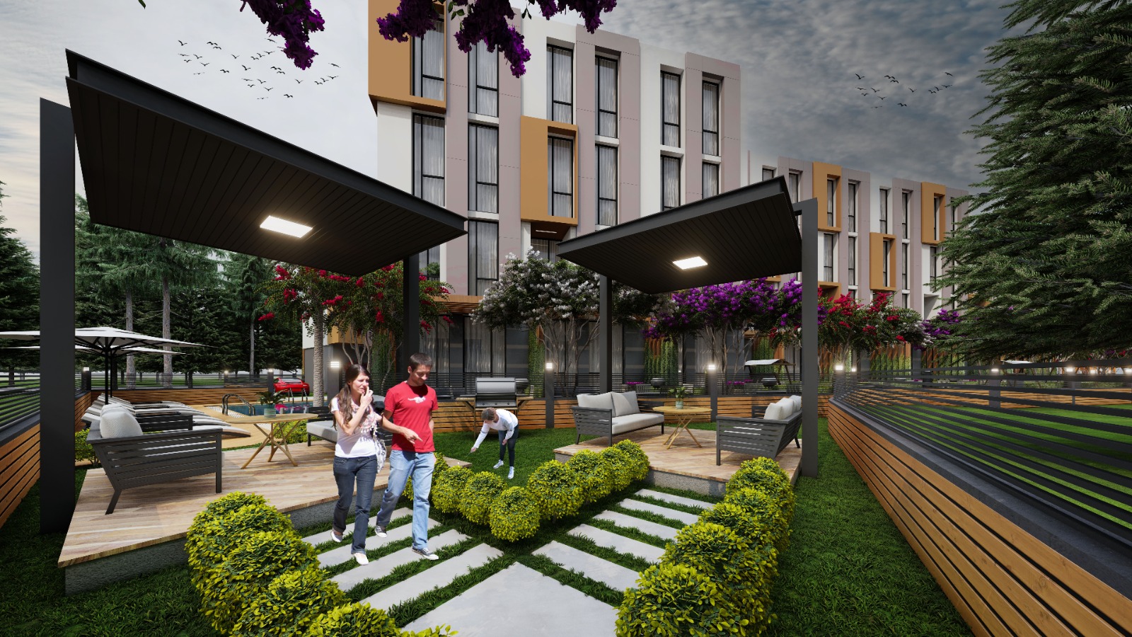 Do dyspozycji mieszkańców oddano nowoczesne strefy wypoczynku, w tym plac zabaw dla dzieci, odkryty basen z leżakami, zadaszoną werandę oraz kameralne miejsca do relaksu. Taka infrastruktura zwiększa atrakcyjność projektu zarówno dla rodzin, jak i inwestorów planujących zakup domu w Batumi pod wynajem długoterminowy lub krótkoterminowy.